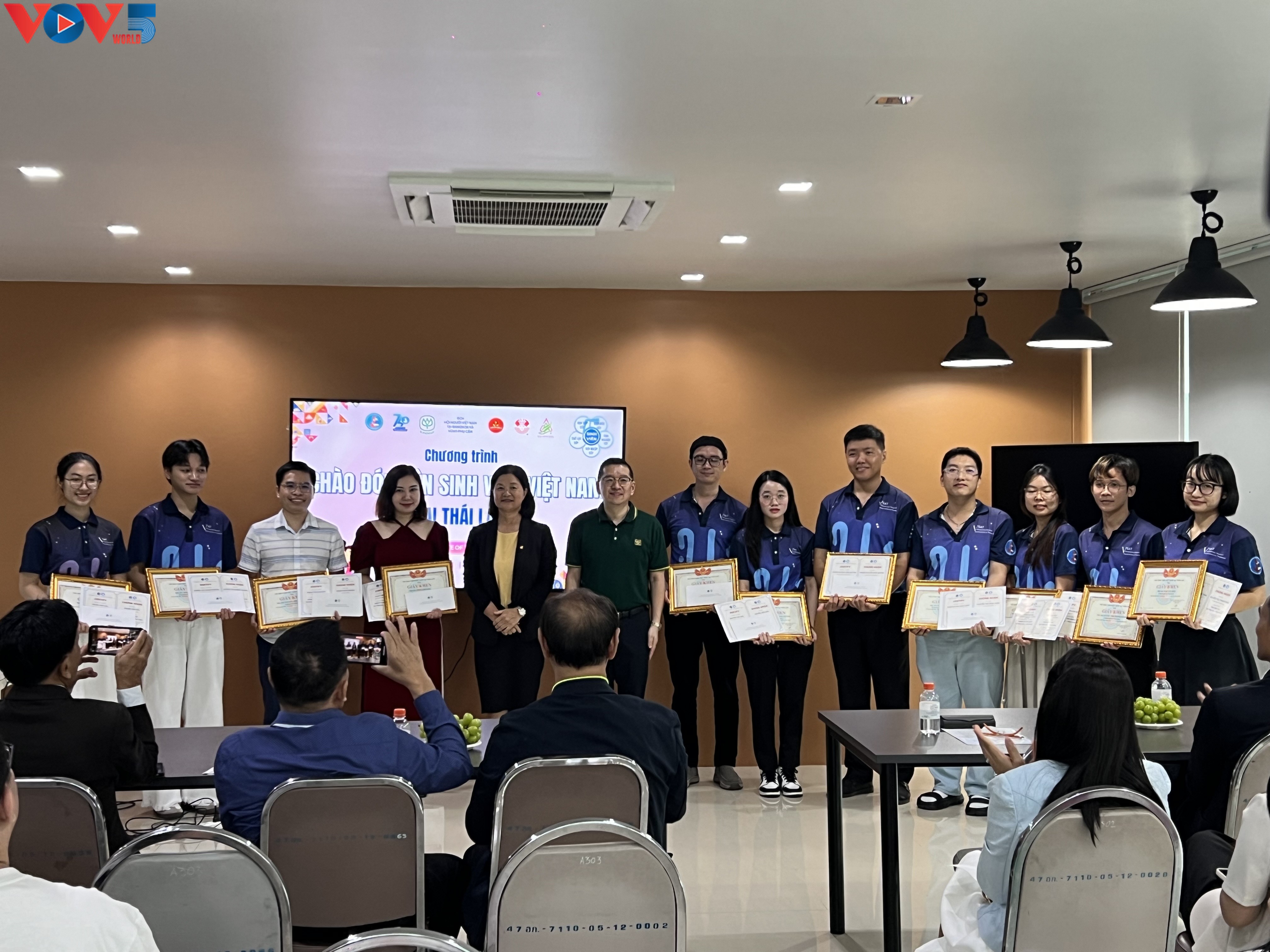 Đại diện Đại sứ quán và Tập đoàn CP Thái Lan trao tặng Bằng khen cho các bạn sinh viên đạt danh hiệu Sinh viên 5 tốt tại Thái Lan. |