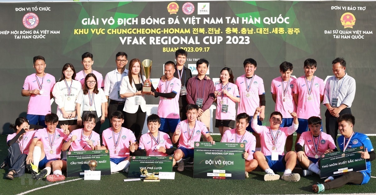 Hiệp hội Bóng đá Việt Nam tại Hàn Quốc (VFAK) vừa tổ chức thành công Giải vô địch bóng đá Việt Nam tại Hàn Quốc (khu vực Chungcheong-Honam), với tên gọi VFAK Regional Cup 2023. Giải được tổ chức tại quận Buan, tỉnh Bắc Chungcheong, hôm 17/9.