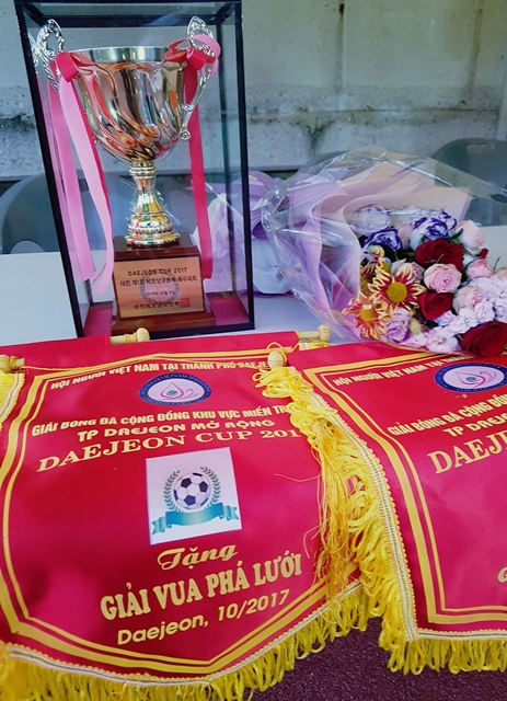 Hội người Việt tại thành phố Daejeon, Hàn Quốc vừa tổ chức giải bóng đá “Daejeon Cup lần thứ 1 năm 2017” vào ngày 8/10. Giải quy tụ 9 đội bóng trong đó có 7 đội là lực lượng lao động người Việt và 2 đội là các sinh viên Việt Nam.