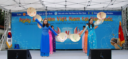 | Tiết mục Múa nón của Ban liên lạc Việt kiều tại Hàn Quốc |
