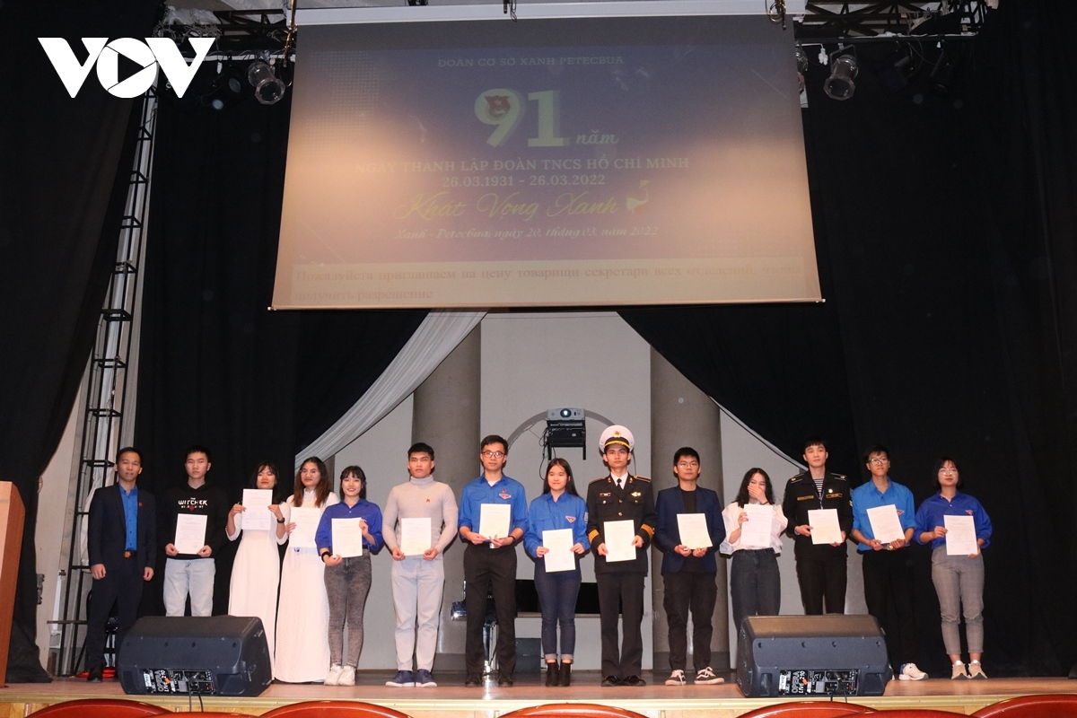 Tại buổi lễ, Đoàn Cơ sở Saint.Petersburg đã trao Giấy khen cho các cá nhân và tập thể có thành tích xuất sắc trong hoạt động Đoàn và phong trào thanh niên 2020 - 2021. Đây chính là nhưng bông hoa tươi thắm góp vào thành tích chung của Đoàn thanh niên và tuổi trẻ cả nước chào mừng 91 năm ngày thành lập Đoàn Thanh niên CS Hồ Chí Minh.
