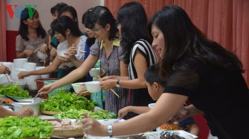 Phần ẩm thực cũng được các nam sinh viên AIT chuẩn bị chu đáo khi tự tay nấu các món để phục vụ chị em. Riêng giò, chả được đặt mua từ Việt Nam, còn các món ăn khác được chế biến từ thực phẩm mua ngoài chợ, tất cả để tạo cảm giác ấm cúng, quê nhà trên đất Thái Lan.