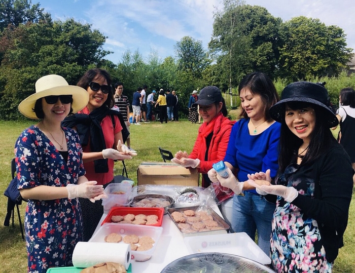 Sau các trò chơi sôi nổi như kéo co, đá bóng, ném bóng cùng tham gia các hoạt động trong khu vui chơi của công viên, các gia đình đã tiến hành liên hoan ẩm thực ngoài trời để tăng cường giao lưu và kết nối.