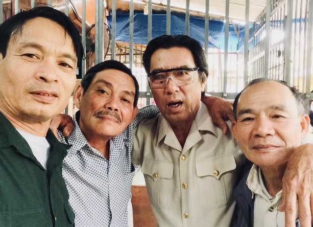 Cựu chiến binh Trần Hữu Quê bên những đồng đội năm xưa |