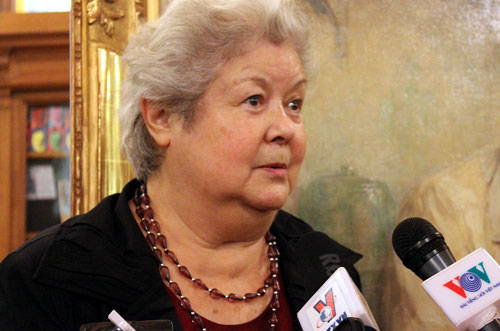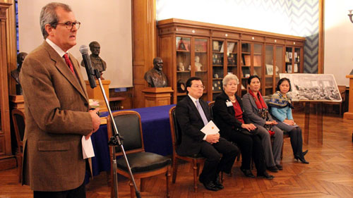 | Đại sứ Việt Nam tại Pháp Dương Chí Dũng trao kỷ niệm chương cho bà Deyme. |
