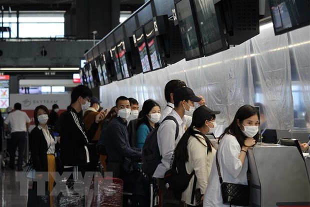 Hành khách làm thủ tục để lên máy bay tại sân bay Narita (Nhật Bản). Ảnh: Đào Thanh Tùng/TTXVN |