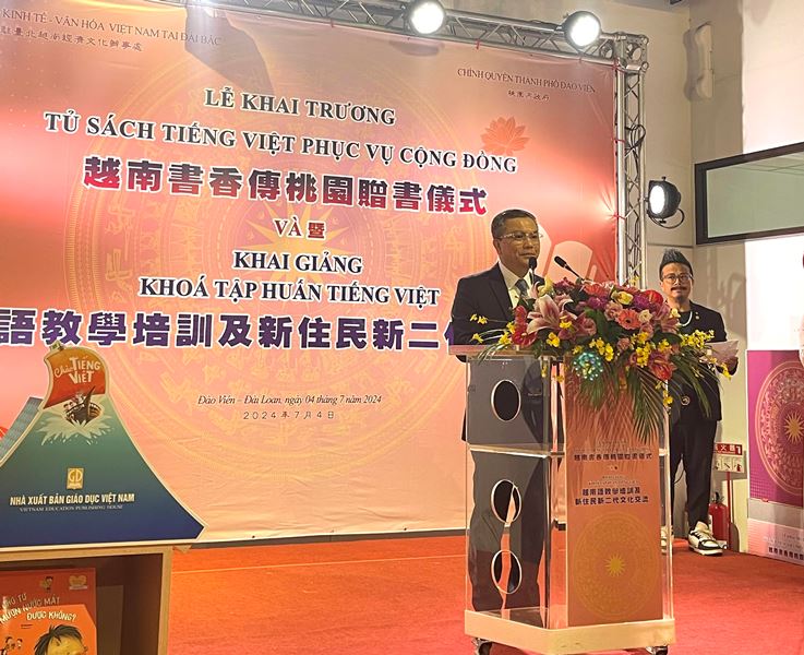 Chiều 4/7, tại Đào Viên - Đài Loan (Trung Quốc), Văn phòng Kinh tế-Văn hóa Việt Nam tại Đài Bắc phối hợp với các đơn vị liên quan tổ chức Lễ khai mạc Khóa tập huấn Giảng dạy tiếng Việt cho giáo viên người Việt Nam tại Đài Loan và khai trương Tủ sách tiếng Việt phục vụ cộng đồng.
