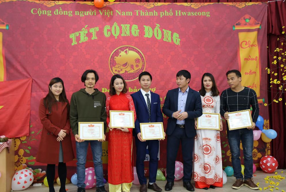 Nhân dịp này, đại diện Hội Người Việt Nam tại Hàn Quốc đã trao giấy khen cho những cá nhân xuất sắc có những đóng góp cho phong trào phát triển cộng đồng người Việt tại Hàn Quốc.