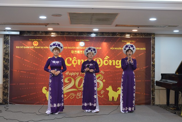 Chương trình Tết Cộng đồng mừng xuân Mậu Tuất 2018 của Hội người Việt Nam tại thành phố Daejeon, Hàn Quốc vừa diễn ra ngày 28/01. Thay mặt đại sứ quán Việt Nam tại Hàn Quốc, ông Ngô Văn Mơ, tham tán, trưởng văn phòng khoa học công nghệ gửi lời chúc mừng năm mới an khang, thịnh vượng của ông Nguyễn Vũ Tú, Đại sứ Đặc mệnh toàn quyền nước Cộng hòa XHCN Việt Nam tại Đại Hàn Dân Quốc, tới cộng đồng bà con kiều bào và bạn bè Hàn Quốc. Hi vọng cộng đồng người Việt tại Hàn Quốc cũng như mối quan hệ song phương giữa người dân hai nước sẽ ngày càng trở nên khăng khít và lớn mạnh hơn trong tương lai.
