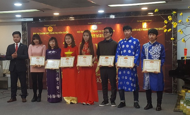 Nhân dịp này, anh Vũ Đức Lượng, đại diện Hội người Việt Nam tại Hàn Quốc, cũng biểu dương và bày tỏ sự cảm kích đến Hội người Việt Nam tại thành phố Daejeon đã nỗ lực tổ chức chương trình này cũng như tất cả các hoạt động dành cho người Việt trong khu vực diễn ra trong năm. 7 cá nhân có thành tích xuất sắc trong phong trào cộng đồng tại Daejeon trong năm 2017 cũng được trao trong dịp này.