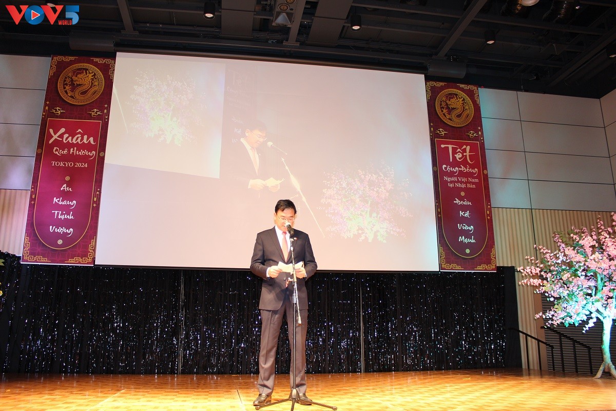 Tối qua (21/1), Đại sứ quán Việt Nam tại Nhật Bản phối hợp cùng Liên hiệp Hội người Việt Nam tại Nhật Bản tổ chức Tết cộng đồng-Xuân quê hương Giáp Thìn 2024, nhằm mang lại không khí Xuân đầm ấm và vui tươi cho kiều bào Việt Nam tại nước này, đồng thời xây dựng cộng đồng người Việt Nam ngày một vững mạnh và gắn kết tại đất nước Mặt Trời mọc.