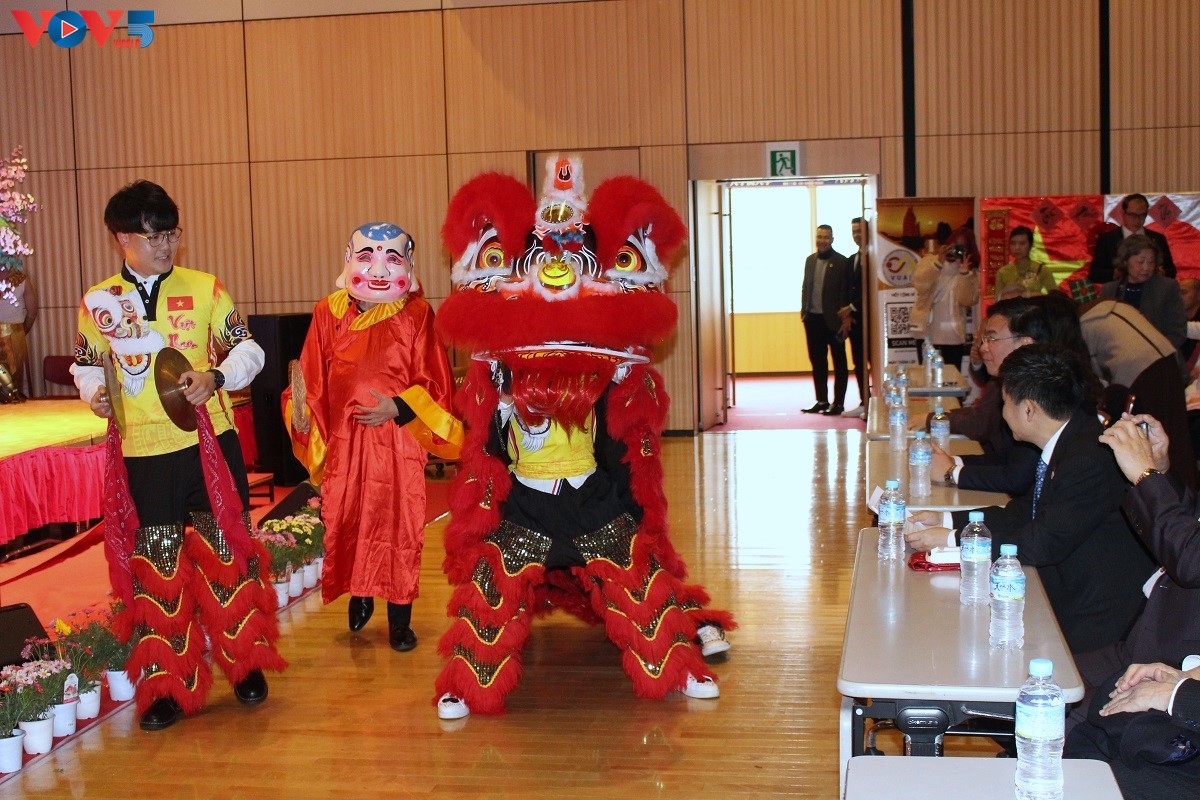 Tiết mục Múa Lân trong chương trình Tết “Xuân Quê Hương”. Ảnh: PV/VOV-Nhật Bản |