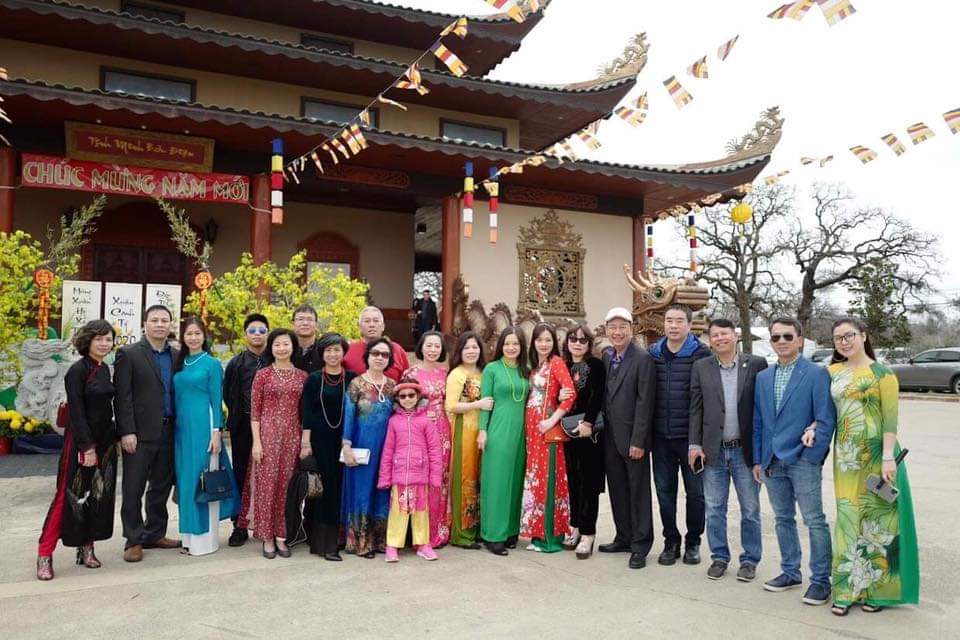 Bà con người Việt ở Dallas, Texas mặc áo dài đi chùa đầu xuân |