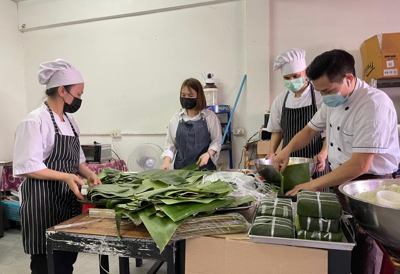 Nhà hàng Phở Vân ở Băng-cốc, Thái Lan với những chiếc bánh chưng gói bằng lá chuối |