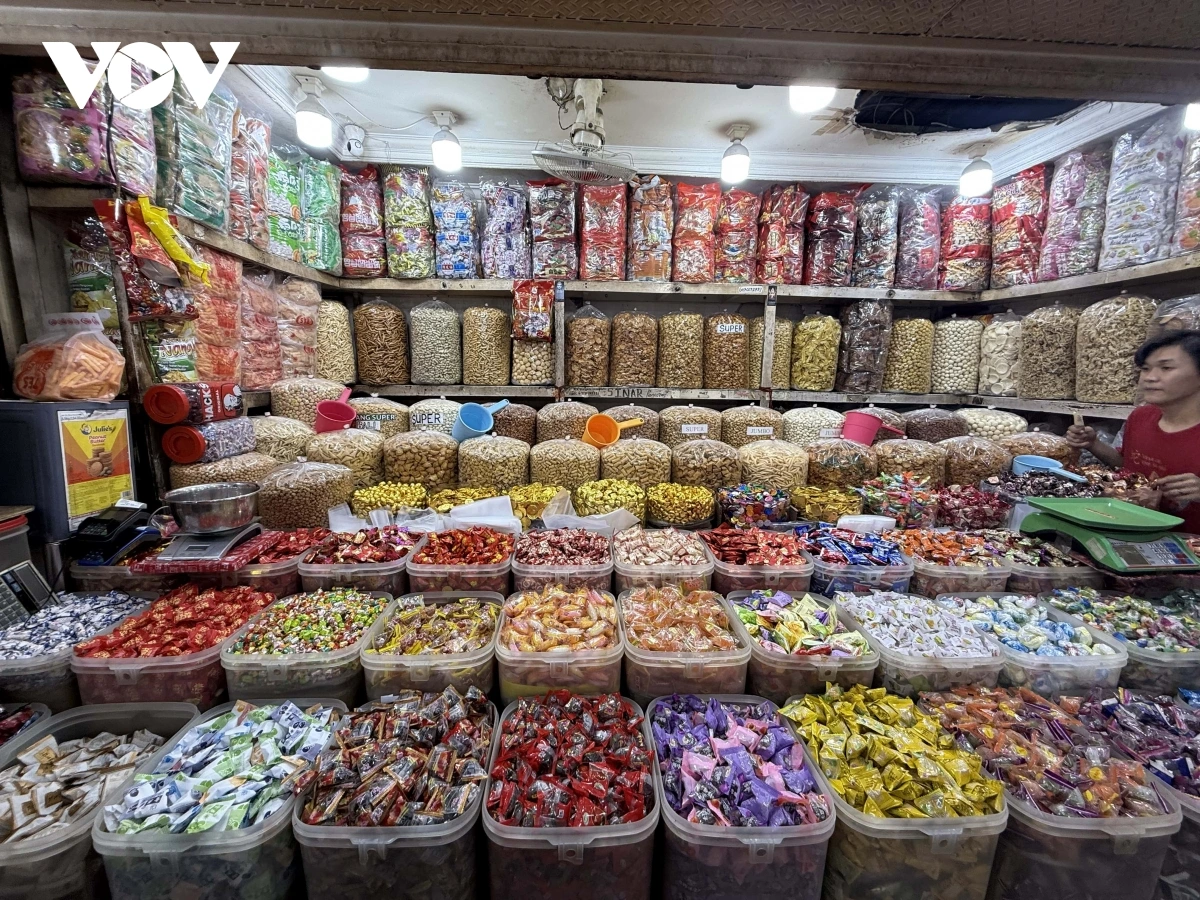 Các loại mặt hàng mứt được trưng bày nhiều màu sắc