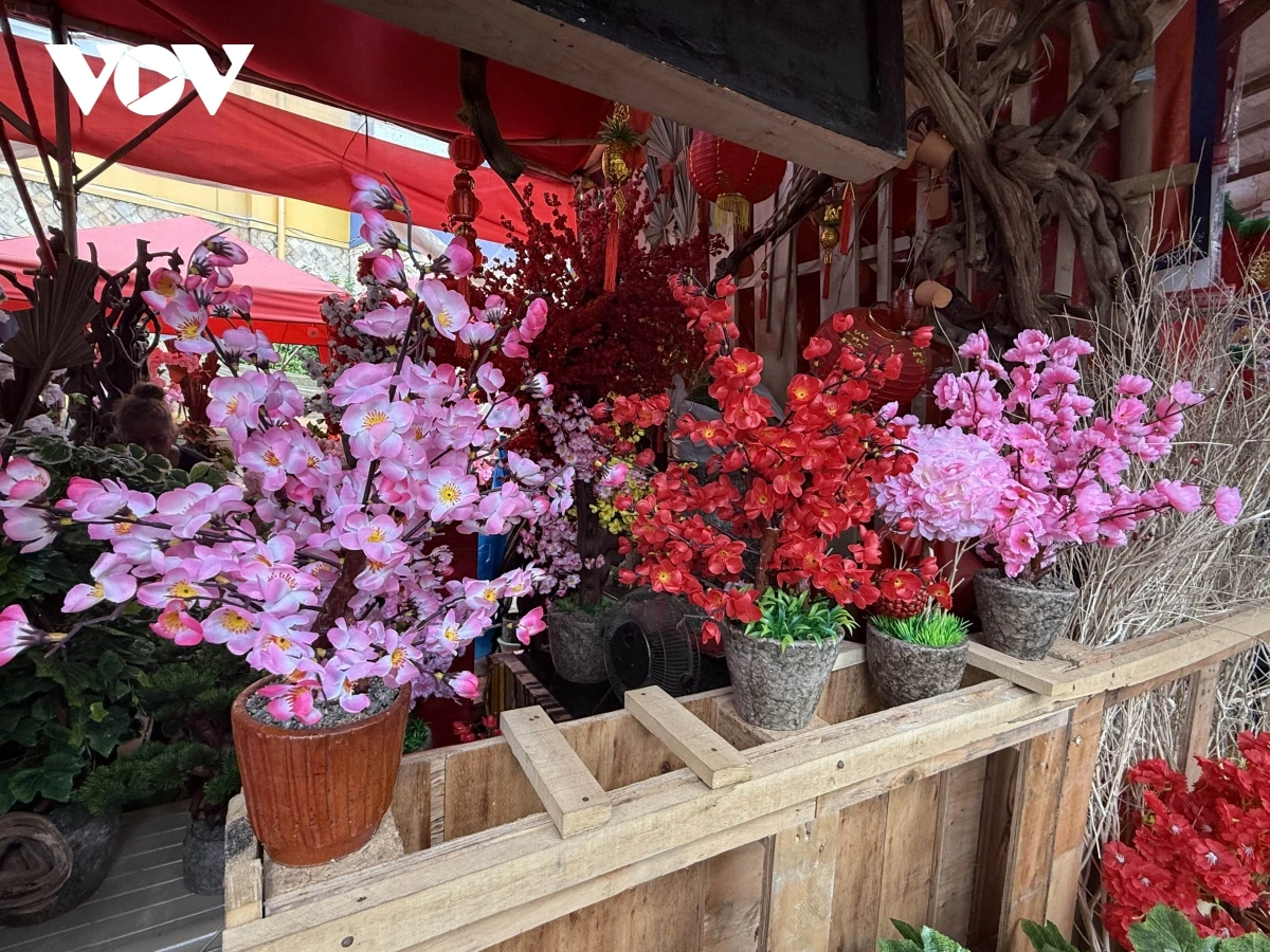 Với giá cao, nhiều người lựa chọn các loại cây giả để trưng bày cho có không khí Tết. Một chậu hoa giá khoảng 80 Rupia (tương đương 130 nghìn VNĐ)