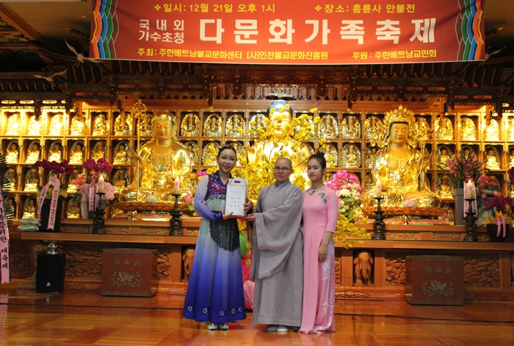 Thay mặt lãnh đạo Đại sứ quán Việt Nam tại Hàn Quốc, Bí thư thứ nhất Cao Minh Đức bày tỏ cảm ơn Hòa thượng trụ trì chùa Heungryunsa, ngài Thị trưởng thành phố Incheon, các nhà chính trị gia và các nghị sỹ Quốc hội Hàn Quốc đã quan tâm tạo điều kiện, hỗ trợ cộng đồng người Việt Nam đang sinh sống, làm việc tại Hàn Quốc nói chung và khu vực Incheon nói riêng, đồng thời tiếp tục dành sự quan tâm cho cộng đồng người Việt Nam trong thời gian tới.