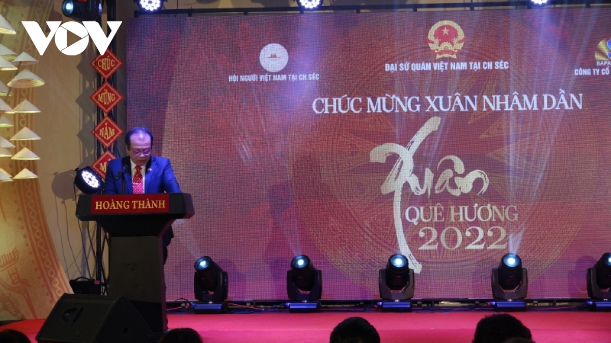 Đại diện bà con cộng đồng người Việt Nam tại Séc, ông Hoàng Đình Thắng Chủ tịch Liên hiệp Hội người Việt Nam tại Châu Âu, Chủ tịch danh dự Hội người Việt Nam tại Séc bày tỏ vui mừng trước những thành tựu phát triển kinh tế xã hội của Việt Nam trong năm 2021 và tự hào về những gì đã đóng góp cho đất nước trong năm qua và tin tưởng bước sang năm Nhâm Dần, Việt Nam sẽ phát triển mạnh mẽ, đồng thời cam kết nỗ lực phấn đấu để nâng cao hình ảnh, vị thế, uy tín của người Việt Nam tại Séc.