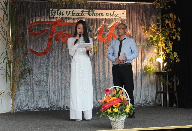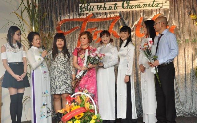 Trong các hoạt động của ngày Tết thì Thùy Dương cũng là một cô bé rất tích cực. Từ hồi hai cháu còn bé tí, thí dụ cô chị học lớp 5 chẳng hạn, cô chị múa thì cô em bé cũng nhảy bên cạnh rất đáng yêu. Và bây giờ đã lớn hai chị em vẫn tham gia tích cực. Cũng có lúc mình nhờ Thùy Dương là bây giờ cô muốn dịch ra tiếng Đức bài thơ Việt Nam này để khi biểu diễn mình cho các bạn người Đức nghe, thì cháu cũng dịch và thường rất hay”.