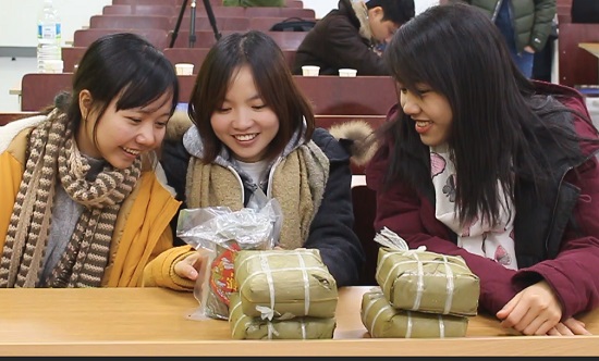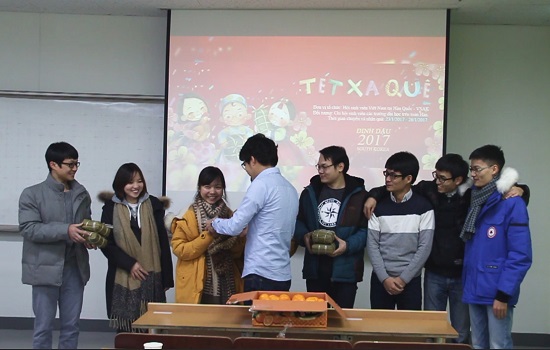 | Niềm vui của các bạn du học sinh khi nhận quà Tết của Hội sinh viên Việt Nam tại Hàn Quốc. |