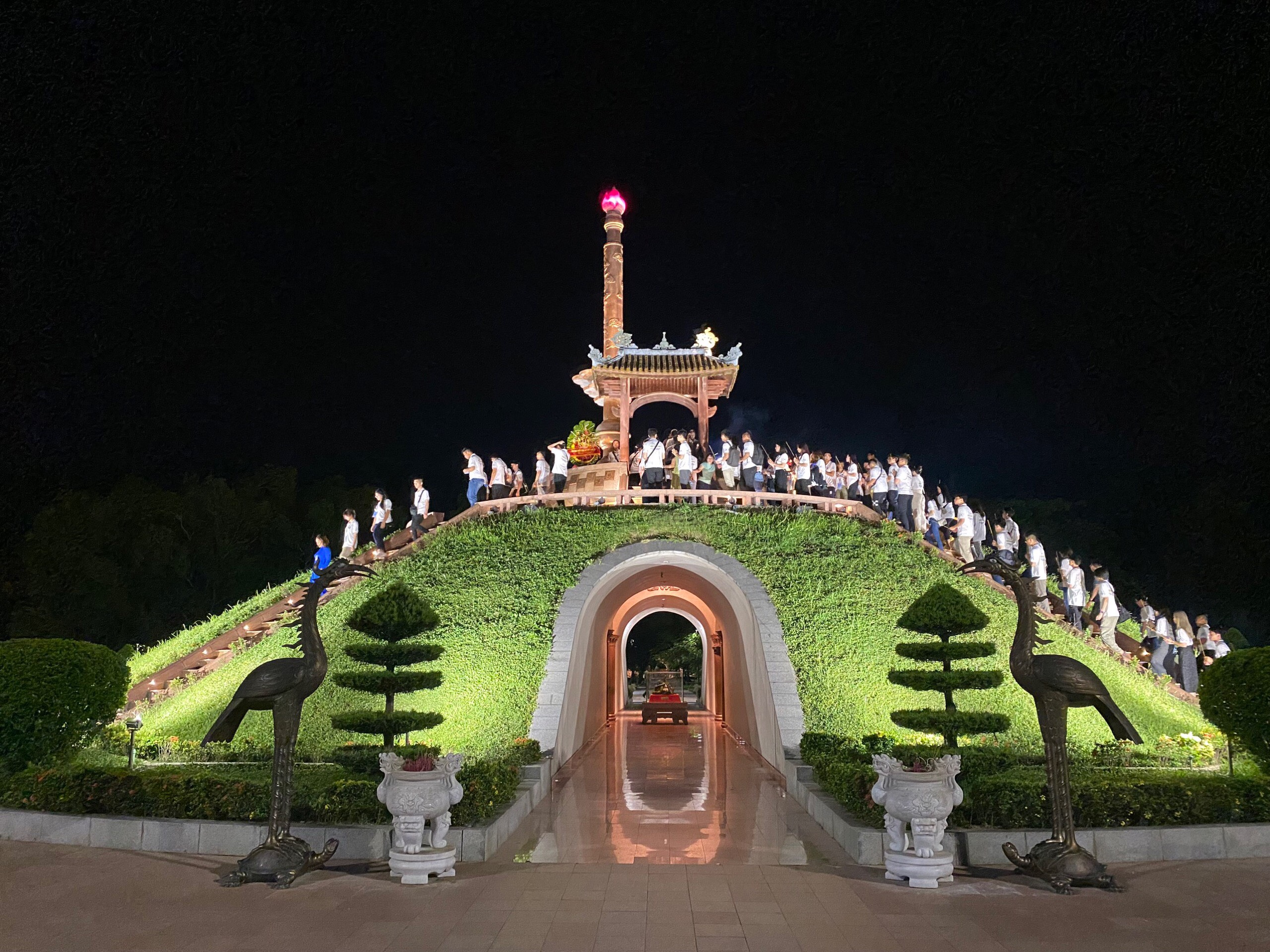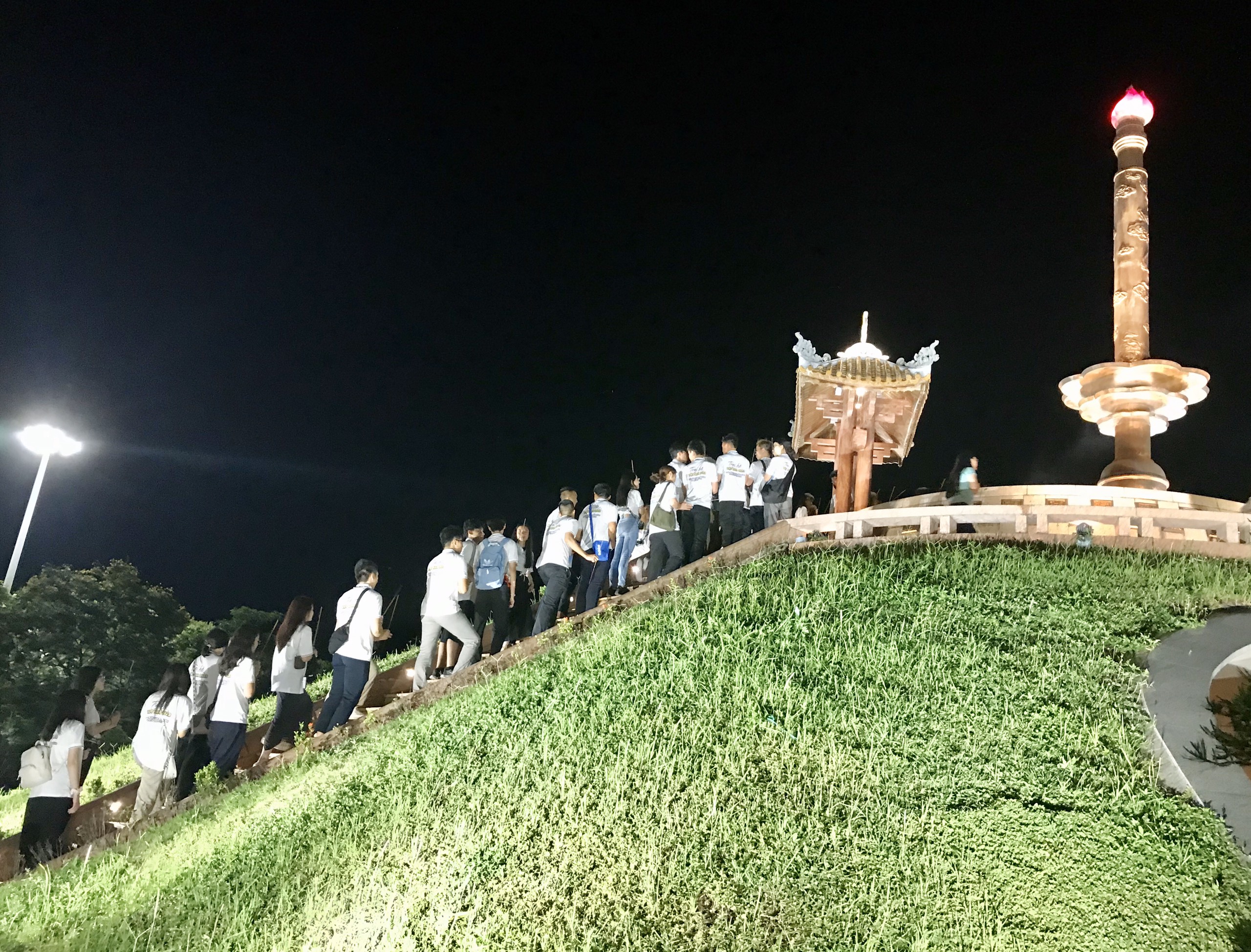 Tối 28/07, 120 thanh niên kiều bào từ 26 quốc gia và vùng lãnh thổ trên thế giới đến dâng hương tại Thành cổ Quảng Trị và thả hoa đăng trên sông Thạch Hãn.