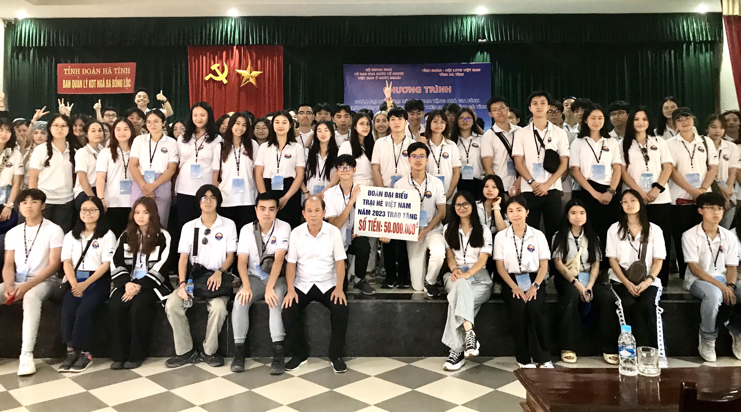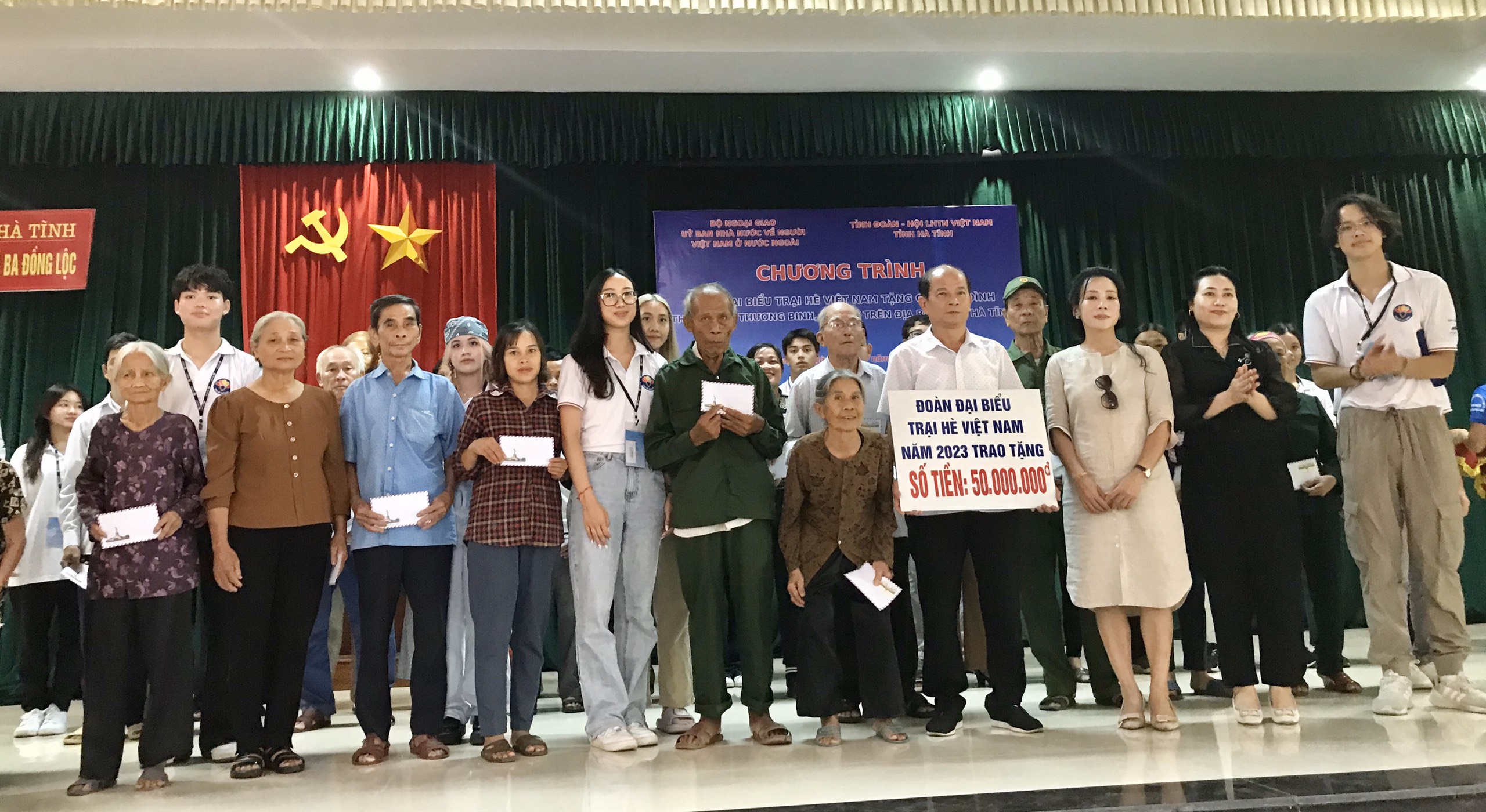 Sau khi dâng hương tại Khu di tích Ngã ba Đồng Lộc, đoàn đại biểu Trại hè Việt Nam 2023 tặng 40 triệu đồng cho thân nhân gia đình các nữ thanh niên xung phong, liệt sĩ và các thương, bệnh binh; 10 triệu đồng cho Hội nạn nhân chất độc da cam/ dioxin của tỉnh Hà Tĩnh.