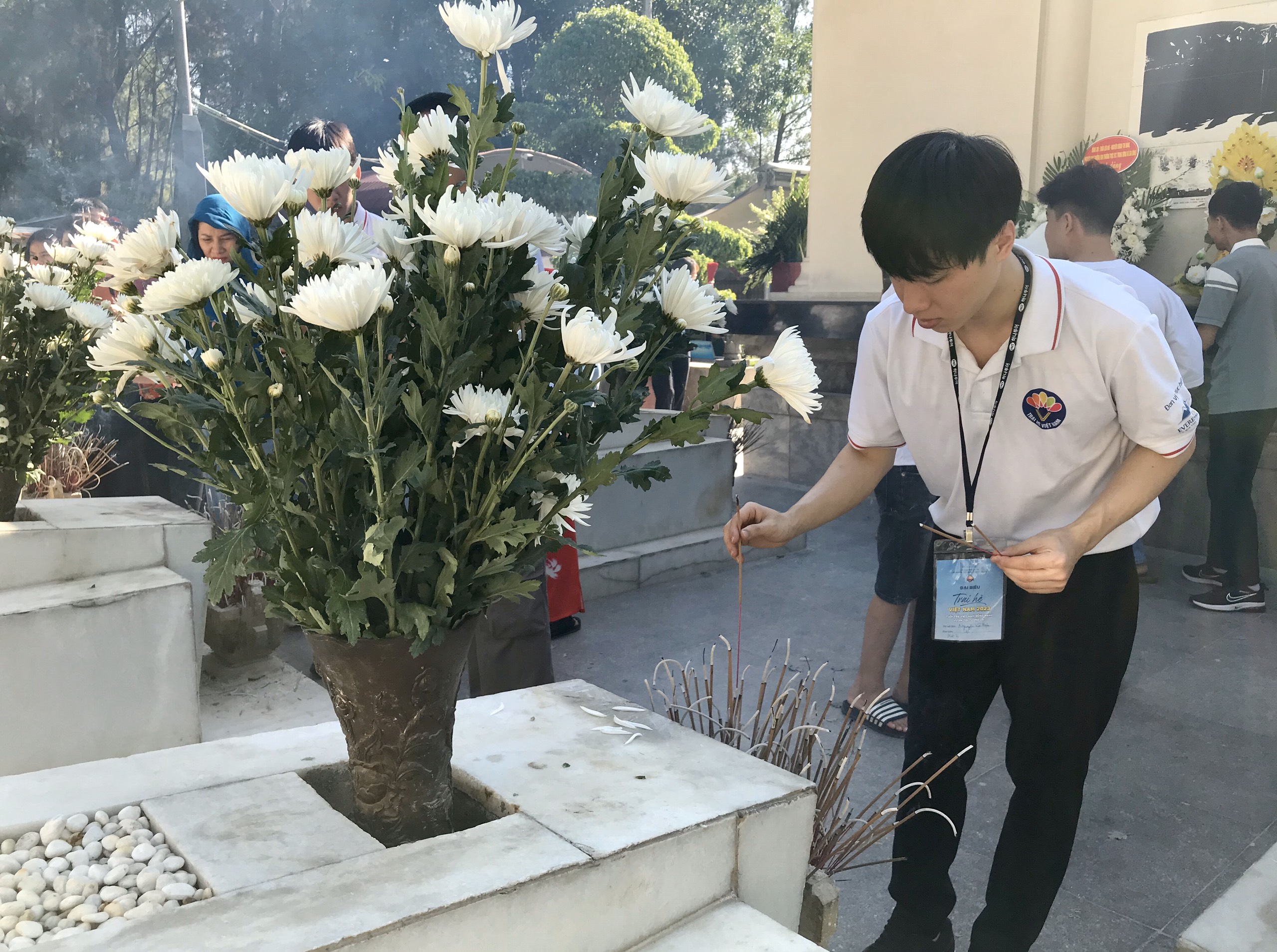 Hôm nay, 26/7, đoàn đại biểu trại hè Việt Nam 2023 đặt vòng hoa, dâng hương, tri ân các Anh hùng liệt sĩ tại Khu di tích lịch sử Ngã Ba Đồng Lộc, tỉnh Hà Tĩnh.