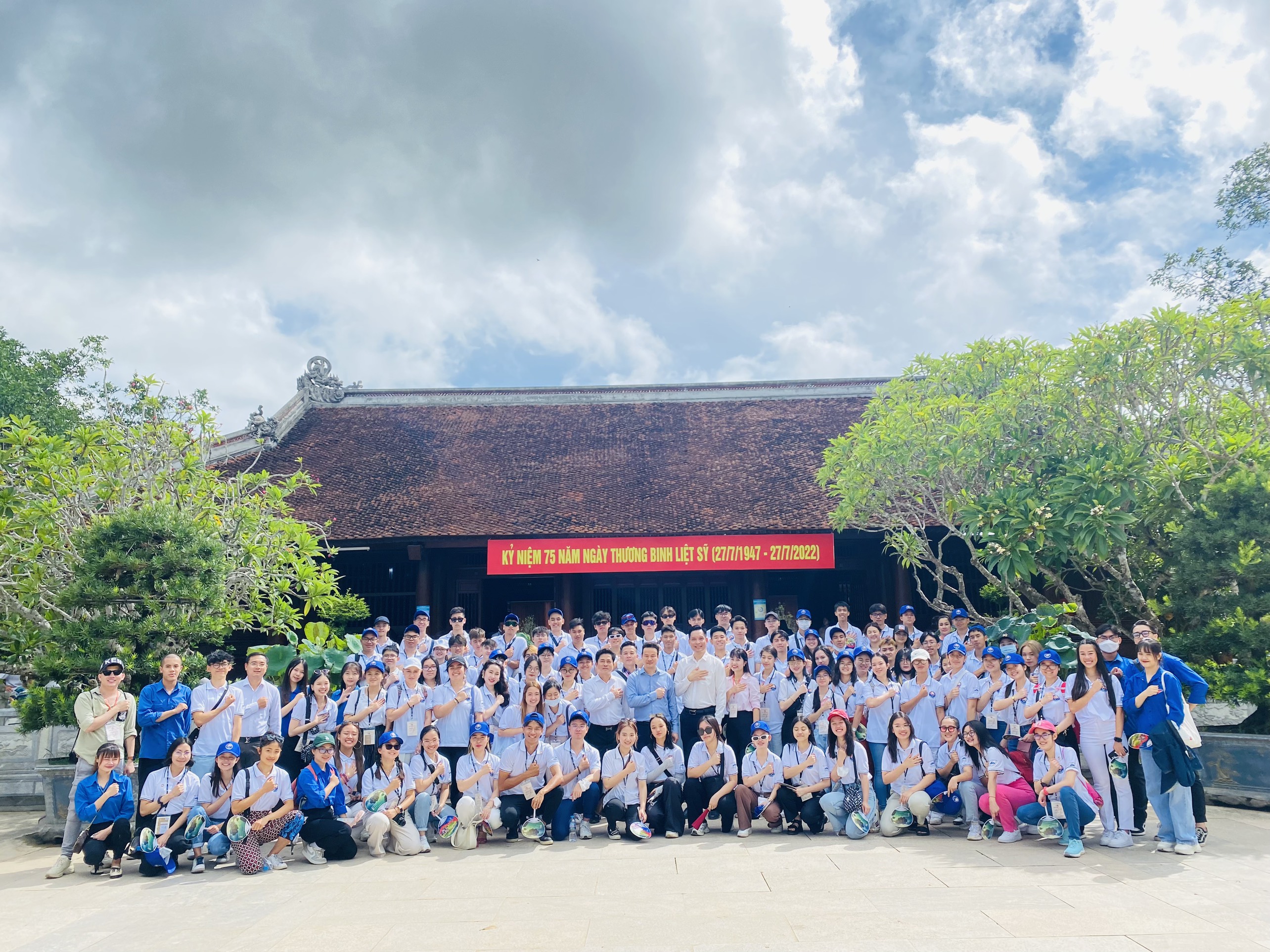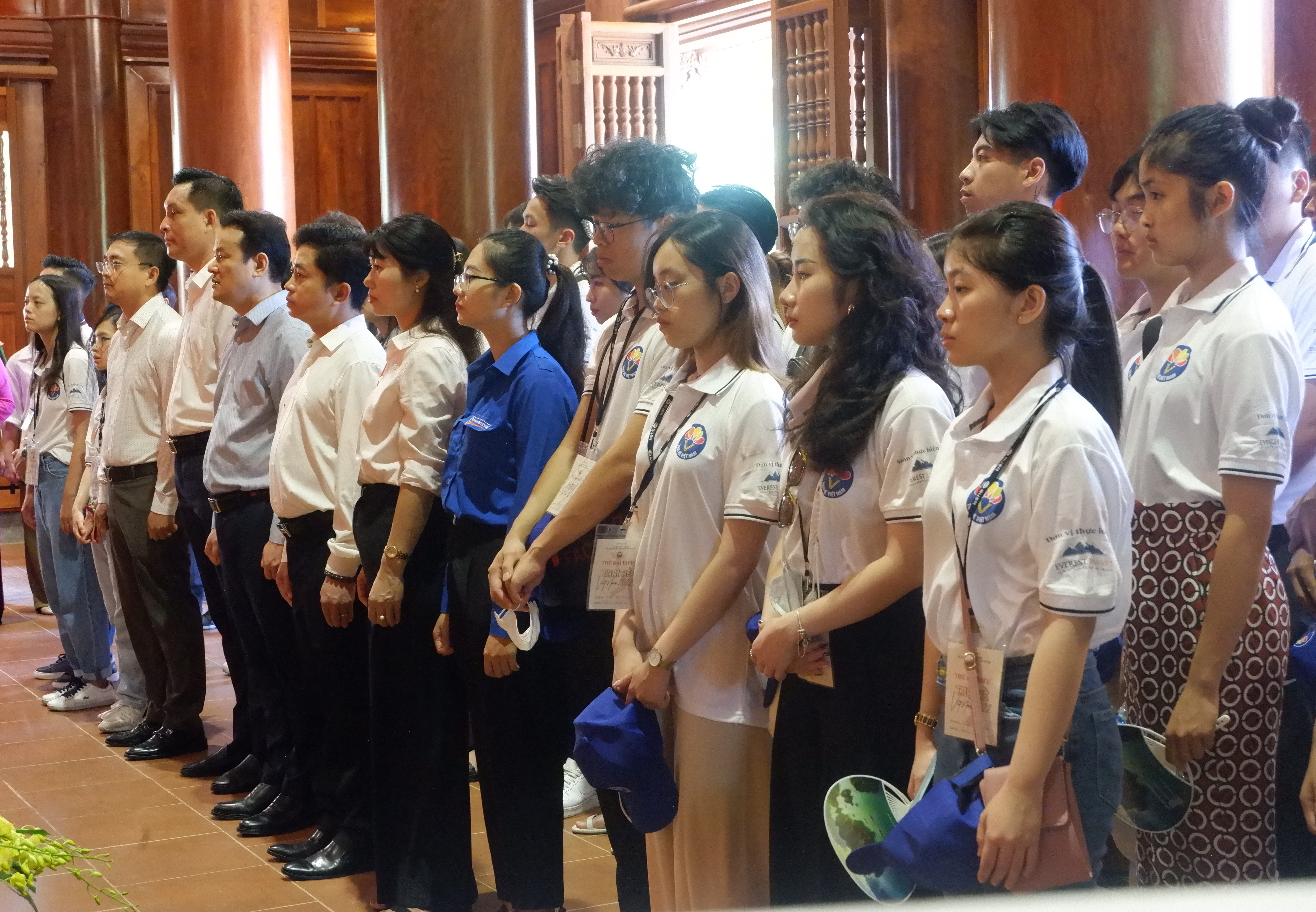 Đoàn đại biểu Trại hè Việt Nam 2022 chụp ảnh lưu niệm tại Khu di tích Kim Liên. |