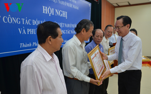 Phó Chủ tịch UBND TP.HCM Lê Thanh Liêm trao bằng khen cho các tập thể và cá nhân đạt thành tích xuất sắc trong công tác vận động kiều bào