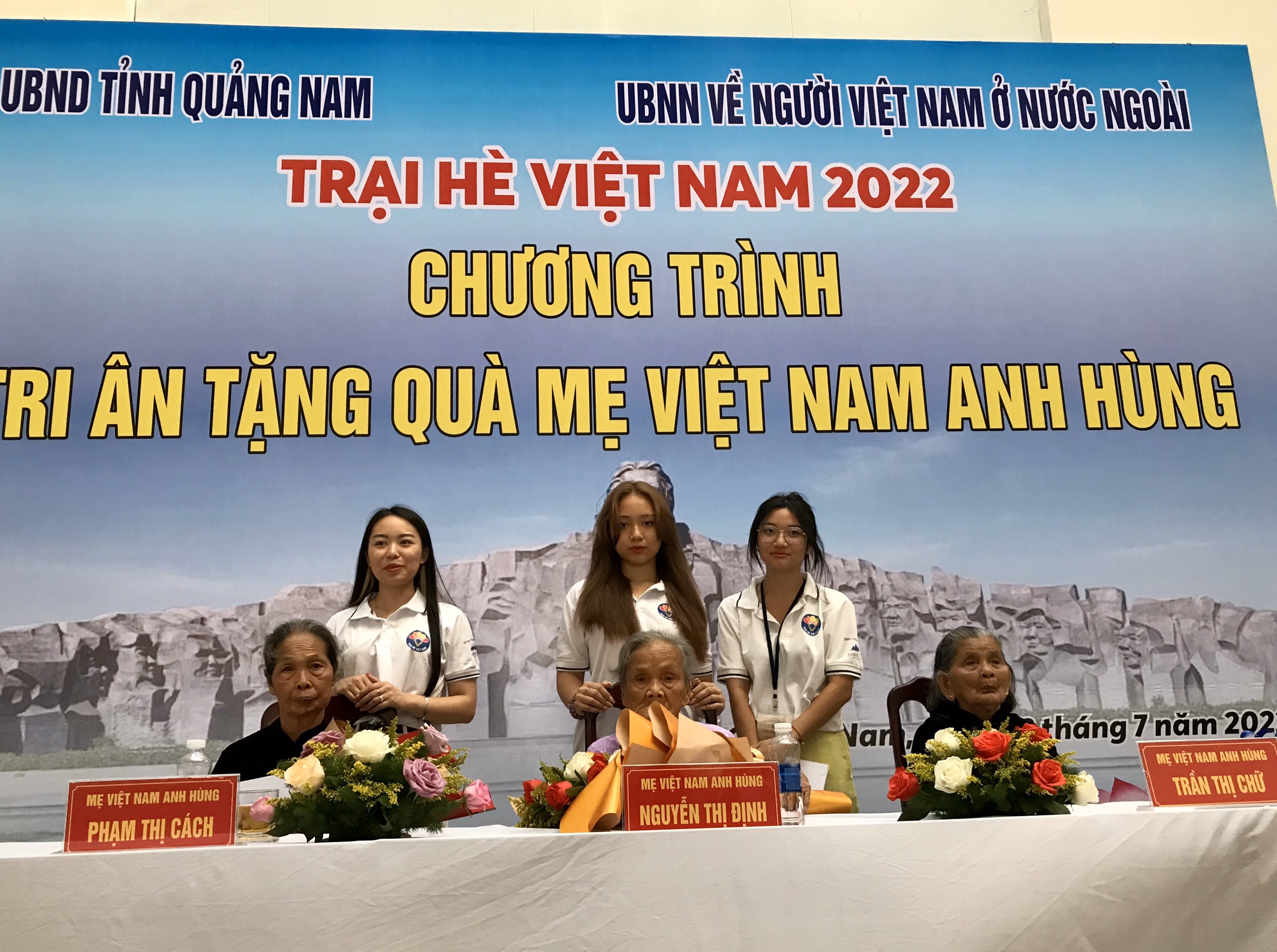 Quảng Nam là tỉnh có 15.332 bà mẹ được Đảng, Nhà nước phong tặng và truy tặng danh hiệu “Bà mẹ Việt Nam anh hùng”. Đây cũng là địa phương có số Bà mẹ Việt Nam anh hùng nhiều nhất cả nước. Đoàn đã tặng quà tri ân tới năm mẹ Việt Nam anh hùng. Mỗi phần quà trị giá 3.000.000 đồng. Nguyễn Phương Thảo, người Việt ở Belarus, đại diện cho thanh niên kiều bào của Trại hè Việt Nam, bày tỏ sự trân trọng và tự hào về các công lao của các bà mẹ Việt Nam anh hùng: “Chúng con rất vui mừng và cảm động được gặp các mẹ Việt Nam anh hùng trong buổi gặp mặt hôm nay. Chúng con biết ơn các mẹ và các anh hùng liệt sỹ đã hy sinh cho đất nước. Con xin kính chúc các bà mẹ Việt Nam anh hùng thật nhiều sức khỏe, mãi là tấm gương để chúng con noi theo”.