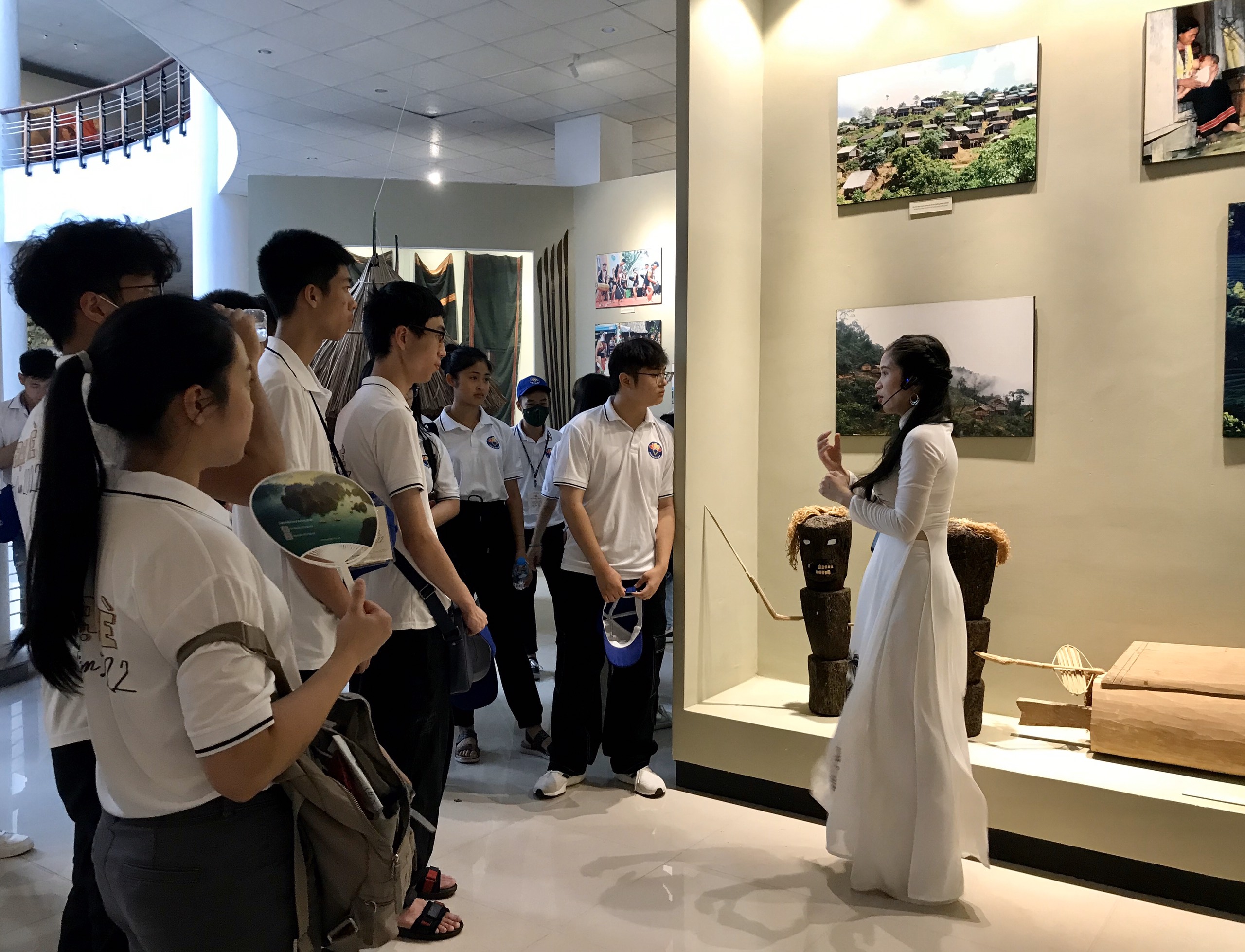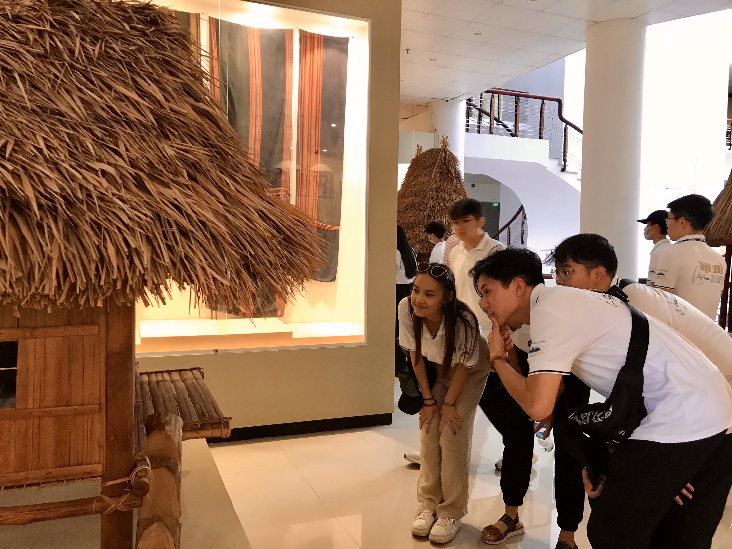 Thanh niên kiều bào nghe hướng dẫn viên giới thiệu về các hiện vật tại bảo tàng tỉnh Quảng Nam. |