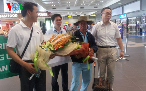 | Đại diện doanh nghiệp đón người lao động tại sân bay quốc tế Nội Bài - Hà Nội |