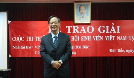 | Ông Bùi Trọng Vân, Chủ nhiệm văn phòng kinh tế - văn hóa Việt Nam tại Đài Bắc phát biểu tại lễ trao giải cuộc thi thiết kế lôgô hội sinh viên Việt Nam tại Đài Loan năm 2011 |
