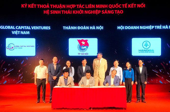 Các đơn vị ký kết thỏa thuận hợp tác liên minh quốc tế, kết nối hệ sinh thái khởi nghiệp sáng tạo Thủ đô. Ảnh hanoimoi.vn |