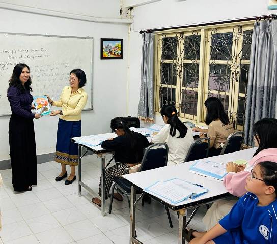 Thứ trưởng đánh giá cao nỗ lực của cộng đồng người Việt Nam ở Lào và các thầy cô giáo trường song ngữ Lào-Việt Nguyễn Du trong việc truyền lửa giữ gìn văn hóa, tiếng Việt trong thời gian qua, trong đó có các hoạt động hưởng ứng ngày tôn vinh tiếng Việt hằng năm (8/9), qua việc có 01 trong 05 năm thí sinh đạt giải xuất sắc, cộng đồng người Việt tại Lào có số lượng bài thi tham gia tìm sứ giả tiếng Việt đông nhất trong các cộng đồng người Việt trên toàn thế giới. Hiện Bộ Giáo dục hai nước có kế hoạch thí điểm mô hình dạy song ngữ tại trường song ngữ Lào-Việt để nhân rộng tại Lào.