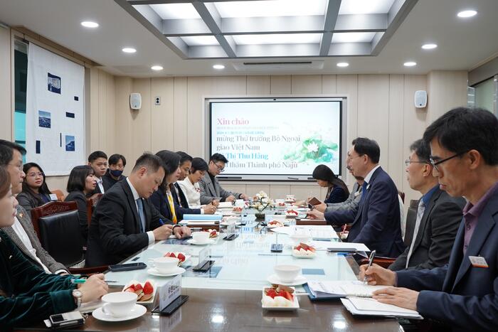 Trao đổi với Thứ trưởng Lê Thị Thu Hằng, Thị trưởng Naju - Bok Soo Kim bày tỏ ấn tượng khi đến thăm Việt Nam với phong cảnh thiên nhiên hùng vĩ, tài nguyên thiên nhiên phong phú. Naju có thế mạnh về công nghiệp và nông nghiệp. Hiện có 16 tập đoàn công nghiệp lớn tập trung tại đây. Vừa qua, Naju đã ký kết lao động với huyện Thuận Thành, tỉnh Bắc Ninh và kết nghĩa với tỉnh Đồng Nai. Naju có các chính sách hỗ trợ về y tế, như: khám và điều trị miễn phí cho người Việt Nam, thành lập trung tâm văn hóa hỗ trợ việc bảo tồn và gìn giữ tiếng mẹ đẻ…