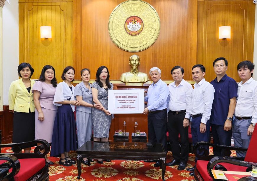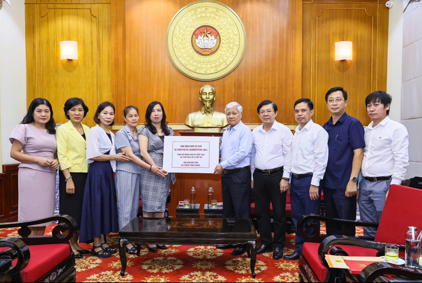 Chiều 13/9, tại Hà Nội, Thứ trưởng Bộ Ngoại giao, Chủ nhiệm Ủy ban Nhà nước về người Việt Nam ở nước ngoài (NVNONN) Lê Thị Thu Hằng thay mặt cộng đồng người Việt tại Lào, Nhật Bản, Liên bang Nga đã trao số tiền hơn 600 triệu đồng cho Chủ tịch Ủy ban Trung ương Mặt trận Tổ quốc Việt Nam Đỗ Văn Chiến để hỗ trợ đồng bào chịu ảnh hưởng của cơn bão Yagi.