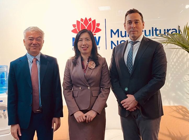 Thứ trưởng Lê Thị Thu Hằng, Tổng lãnh sự Việt Nam tại Sydney Nguyễn Thanh Tùng (trái) và ông Joseph La Postra – Quốc vụ khanh Bộ đa sắc tộc bang NSW. |