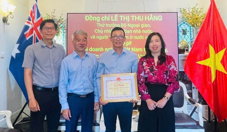 Thứ trưởng Lê Thị Thu Hằng tặng Giấy khen cho Hội Doanh nghiệp Việt Nam tại Sydney vì đã có thành tích trong công tác phòng chống Covid |