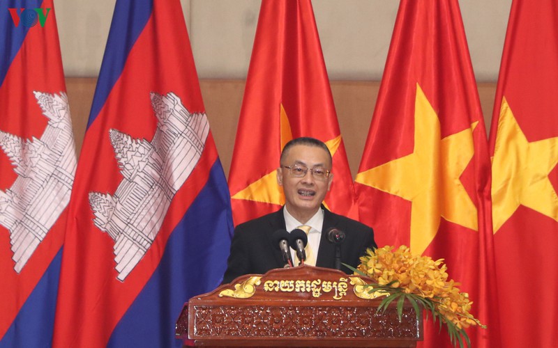 | Đại sứ Việt Nam tại Campuchia Vũ Quang Minh phát biểu tại buổi lễ. |