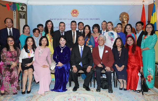 Ân cần chuyển lời hỏi thăm của Lãnh đạo Đảng, Nhà nước đến toàn thể bà con người Việt Nam đang sinh sống tại Thụy Điển, Thủ tướng Nguyễn Xuân Phúc nhấn mạnh, Nhà nước và nhân dân Việt Nam luôn coi trọng và ghi nhớ sự ủng hộ, giúp đỡ quý báu và hiệu quả mà Thụy Điển đã dành cho Việt Nam trong quãng thời gian khó khăn, vất vả nhất của cuộc kháng chiến giành độc lập dân tộc của nhân dân Việt Nam.