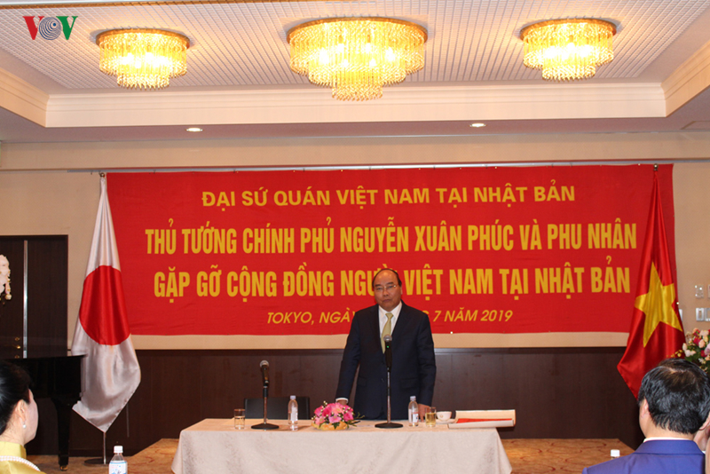 Sau khi nghe báo cáo của Đại sứ Việt Nam tại Nhật Bản Vũ Hồng Nam về tình hình phát triển của trí thức, cộng đồng Việt Nam tại Nhật Bản, Thủ tướng Nguyễn Xuân Phúc đã khái quát, chia sẻ với cộng đồng, trí thức Việt Nam tại Nhật Bản về tình hình trong nước.