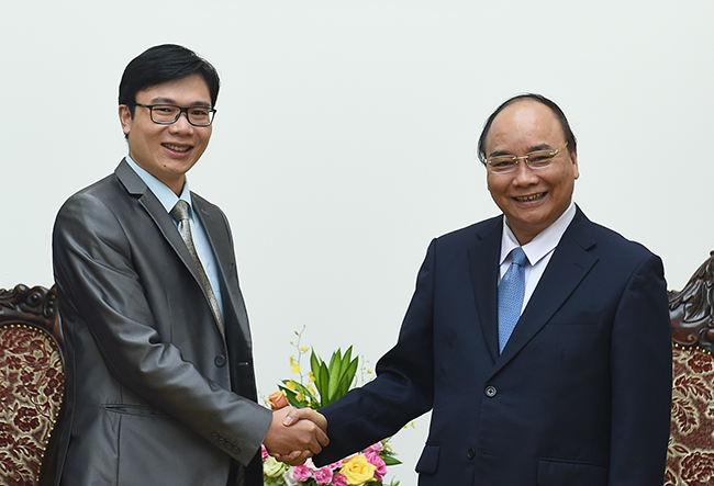 | Thủ tướng Nguyễn Xuân Phúc tiếp Chủ tịch Hội khoa học và chuyên gia Việt Nam tại Pháp, GS. Nguyễn Đức Khương. Ảnh: VGP |