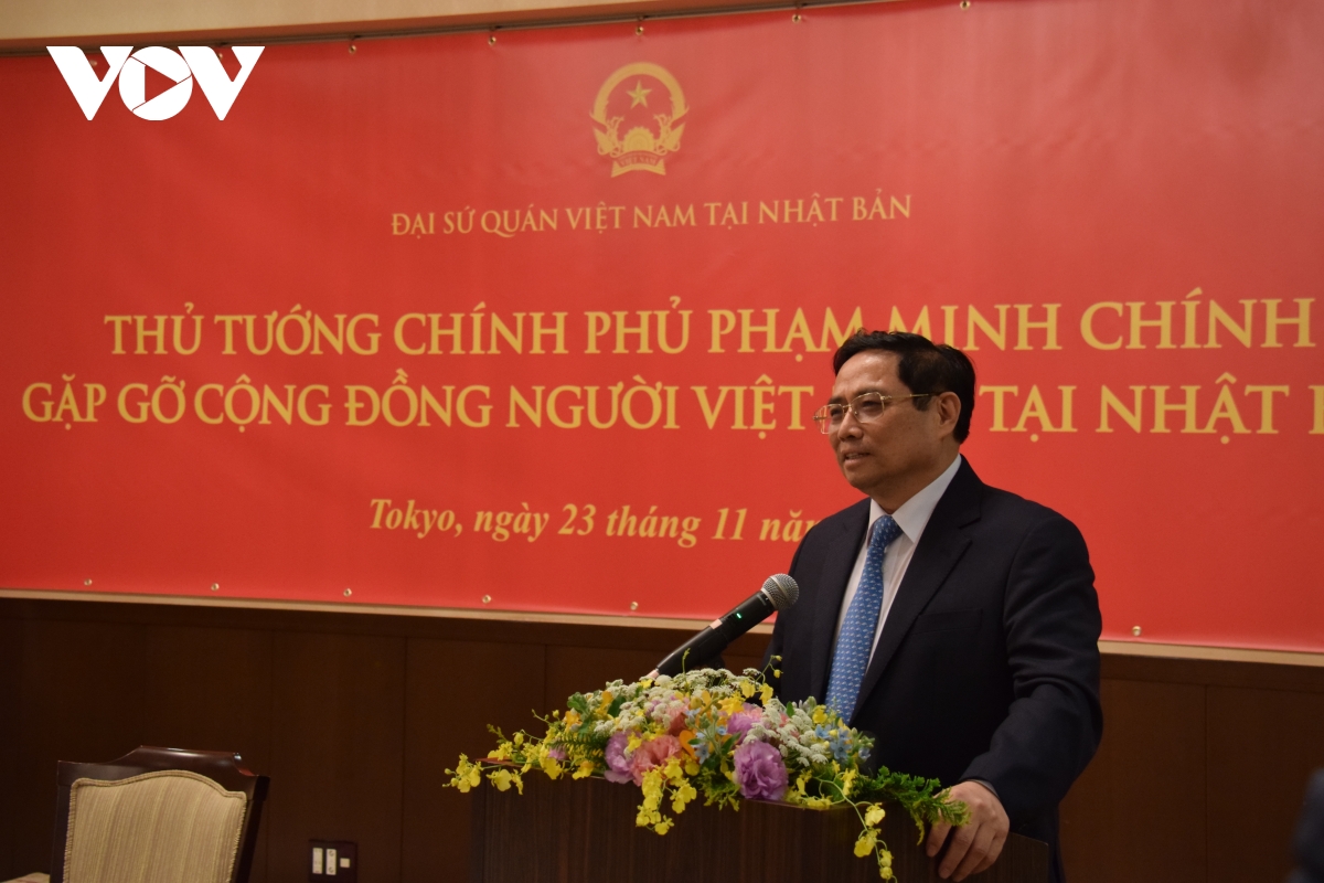 Tối ngày 23/11, trong khuôn khổ chuyến thăm chính thức Nhật Bản, Thủ tướng Chính phủ Phạm Minh Chính đã có buổi gặp mặt cộng đồng người Việt Nam tại Nhật Bản.