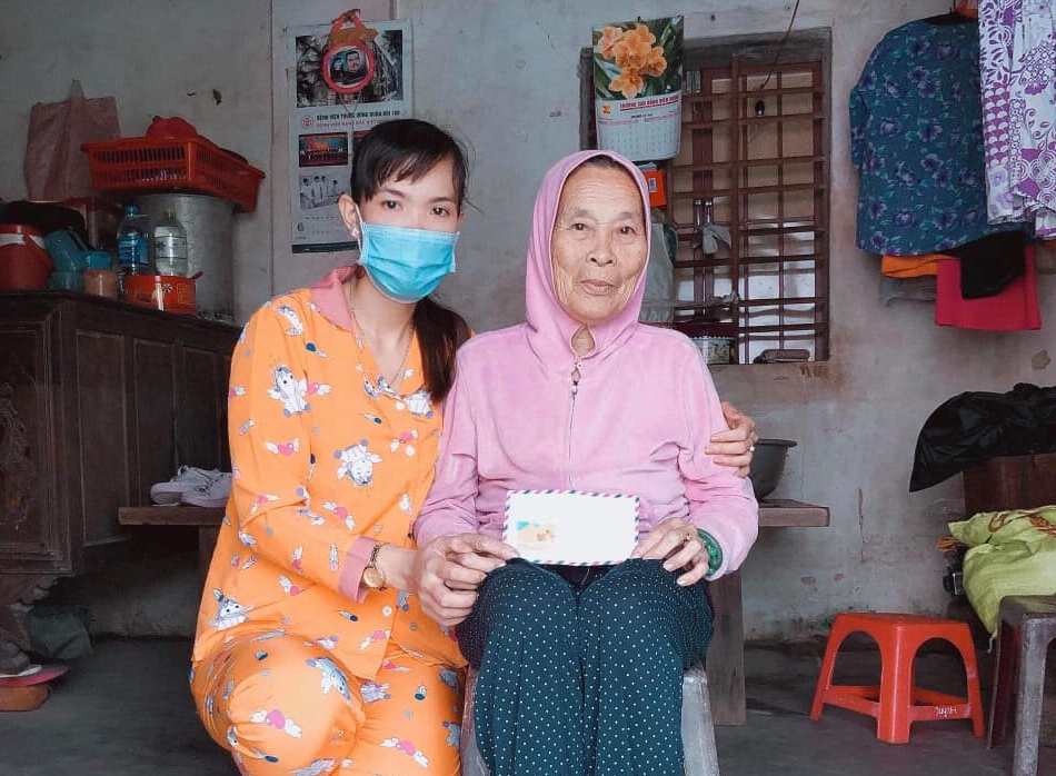 Món quà nhỏ của kiều bào Nguyễn Xuân Trường đã gửi đến gia đình liệt sĩ Trần Văn Phương. Trong ảnh là Trần Mai Thủy, con gái liệt sĩ và mẹ vợ liệt sĩ Trần Văn Phương. |