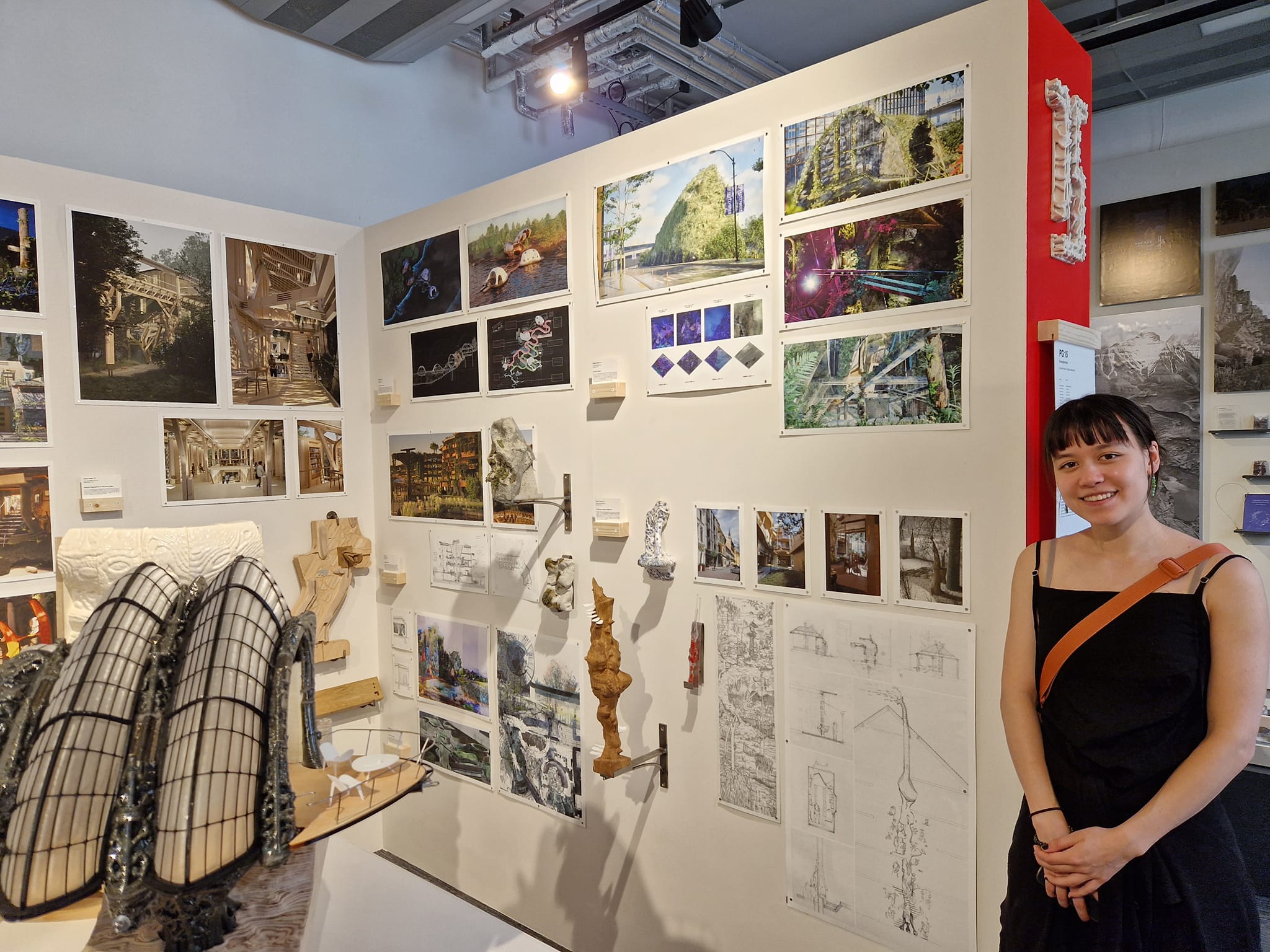 Thuroczy Karolina My Lan bên phần trưng bày Luận án tốt nghiệp của mình trong triển lãm tại trường The Bartlett (UCL, Anh). |