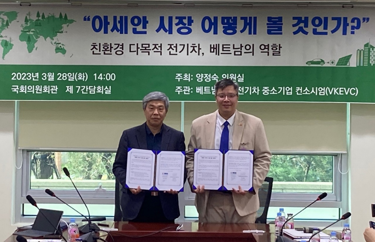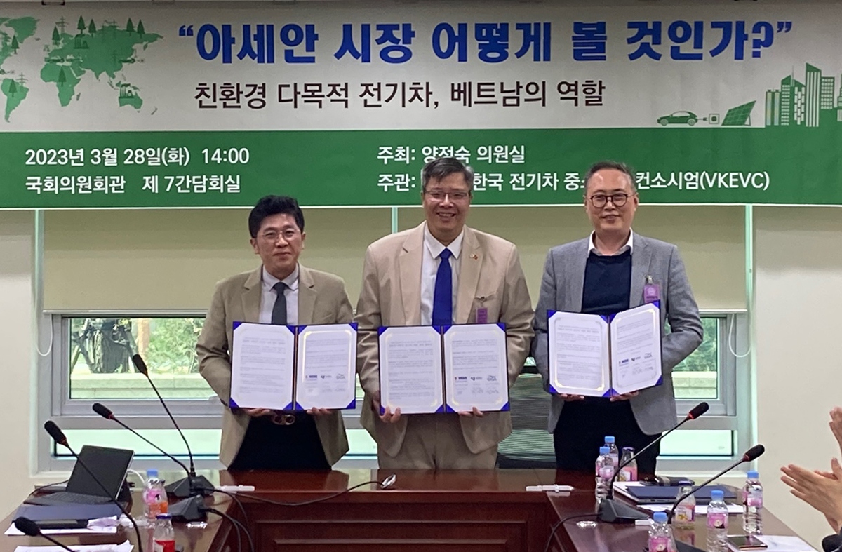 Ngày 28/3, tại Hội trường số 7 trụ sở Quốc hội Hàn Quốc, Hiệp hội Doanh nhân & Đầu tư Việt Nam - Hàn Quốc (VKBIA) và Liên minh Di chuyển Xanh Việt-Hàn (VKERC) phối hợp cùng văn phòng Nghị sỹ Quốc hội Hàn Quốc đồng tổ chức Diễn đàn Công nghiệp Xanh và Di chuyển thông minh-Việt Hàn gắn kết phát triển thị trường ASEAN.