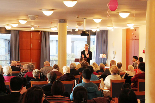 Ông Klaus Baumgarten dẫn chương trình tại buổi biểu diễn