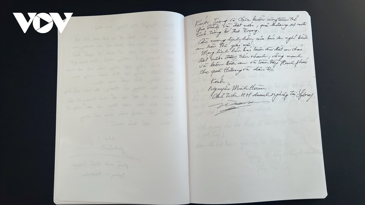 Anh Cao Xuân Sơn cũng bày tỏ lòng biết ơn với Tổng Bí thư Nguyễn Phú Trọng khi viết các dòng lưu bút “Cháu nói riêng cũng như toàn thể nhân dân Việt Nam nói chung vô cùng biết ơn những gì Bác đã làm cho đất nước và cháu cũng như mọi người sẽ rất nhớ Bác. Mong gia đình Bác chóng vượt qua nỗi đau và tiếp tục gìn giữ ngọn lửa mà Bác đã thắp lên cho nhân dân Việt Nam”.