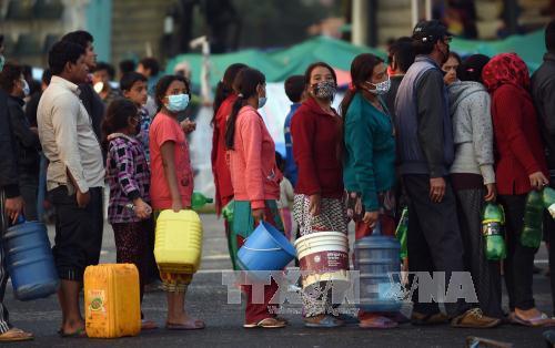 | Người dân xếp hàng chờ lấy nước sinh hoạt sau trận động đất kinh hoàng tại Kathmandu. Ảnh: AFP/TTXVN |